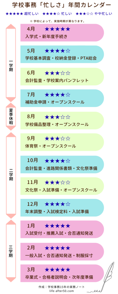 学校事務の年間の流れを知っているだけで、気持ちのゆとりがまったく違います。